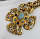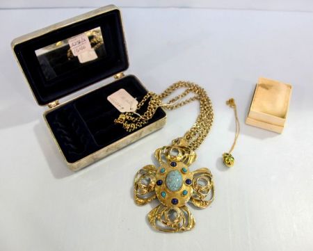 2256 Large Decorative Gold Pendant in Silverplate Box & Small Egg Necklace