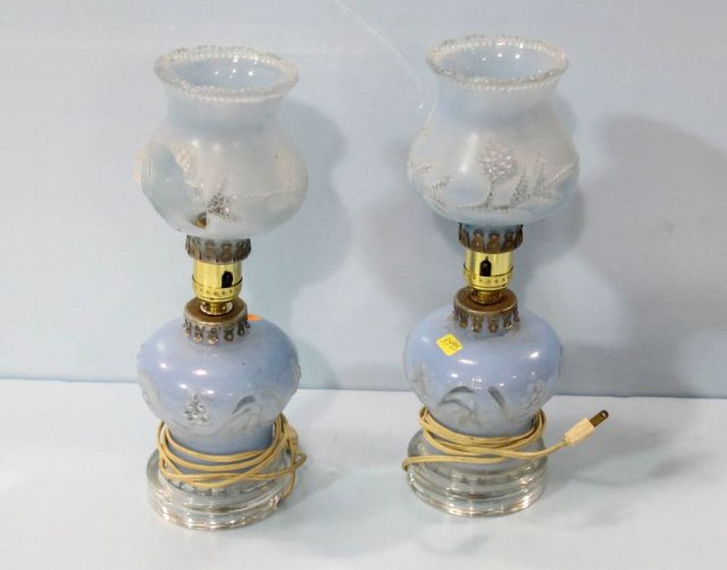 Broken shade, missing section; 13" h. Broken shade, missing section; 13" h.
