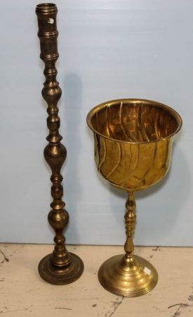 2924 Brass Planter on Stand & Brass Floor Candle Holder
