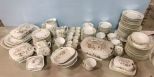 Ten dinner plates, twelve salad plates, twelve dessert plates, twelve soup bowls, eleven berry bowls, five covered dishes, round tray, three platters, sugar, creamer, pitcher, four various bowls, twelve demitasse cups and saucers, ten cups and twelve saucers Ten dinner plates, twelve salad plates, twelve dessert plates, twelve soup bowls, eleven berry bowls, five covered dishes, round tray, three platters, sugar, creamer, pitcher, four various bowls, twelve demitasse cups and saucers, ten cups and twelve saucers