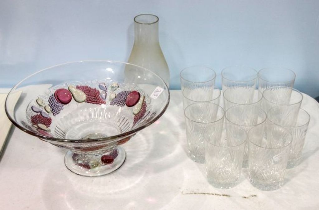 2662 Della Robbia Footed Bowl and Eleven Cut Glass Tumblers