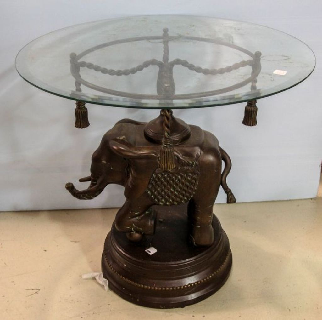 2411 Resin and Metal Elephant Table with Glass Top