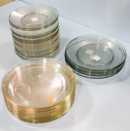 3002 Seventeen Glass Dinner Plates & Twenty One Glass Salad Plates