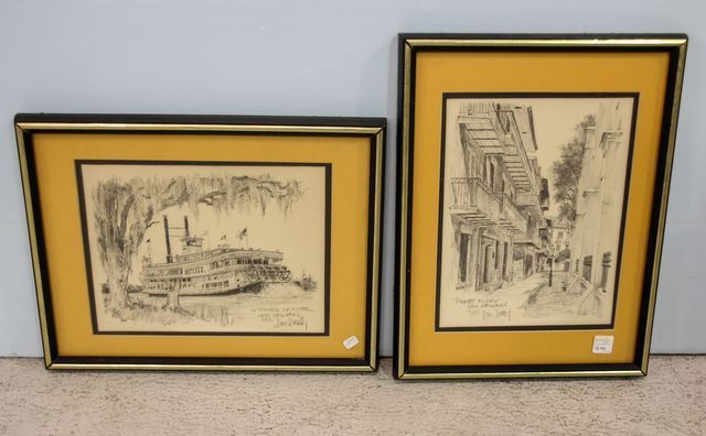 3110 Pencil Etching of Pirates Alley, Steamer Natchez