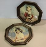 3128 Two Octagon Shaped Tins of Young Girl and Boy