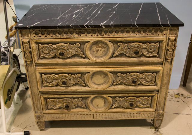 200 Carved Three Drawer Marble Top Chest