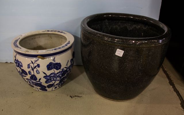 2958 Blue and White Planter & Brown Planter