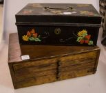 2962 Four Drawer Wood Box & Black Metal Box with Painted Strawberries