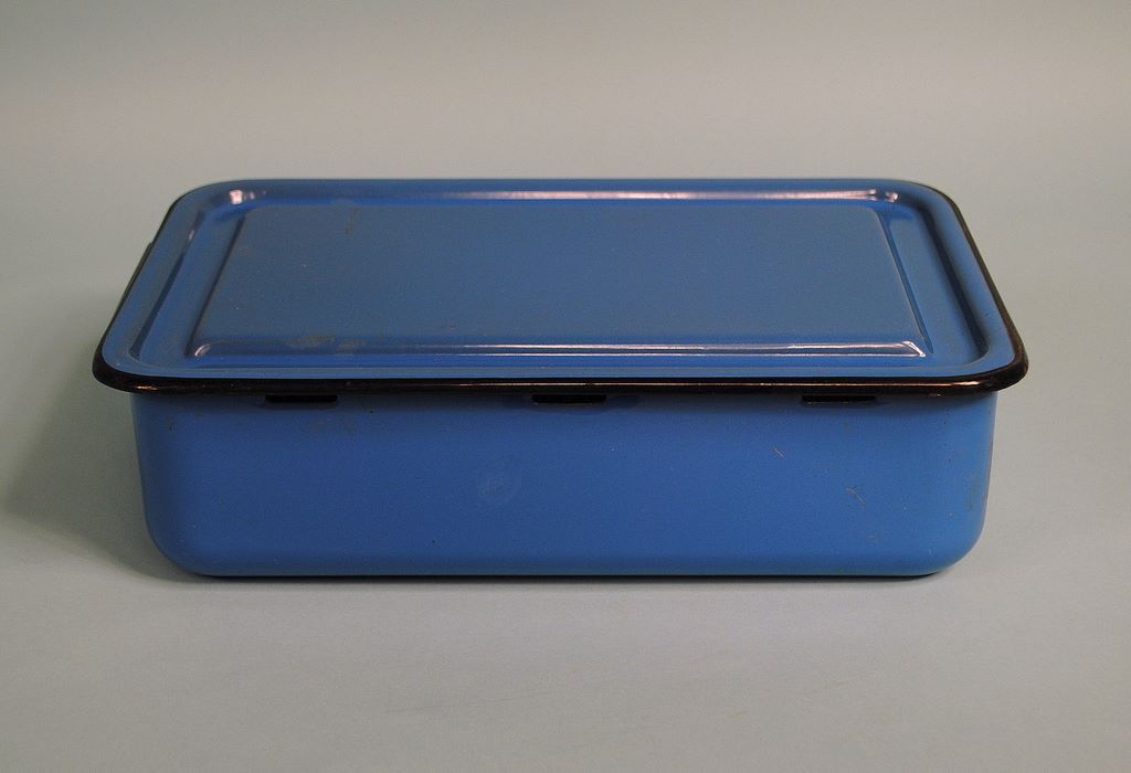 Blue Enamelware Steamer. 5"h 15"w 9 1/2 d Blue Enamelware Steamer. 5"h 15"w 9 1/2 d