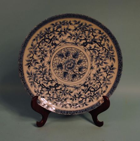 Large Blue and White Charger, Oriental blue and white floral design. 16" Diameter Large Blue and White Charger, Oriental blue and white floral design. 16" Diameter