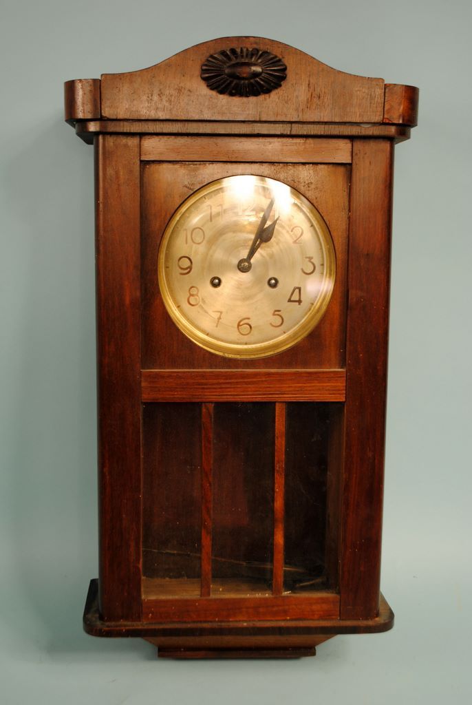 20th Century German Time and Strike Walnut Case Clock, 23 1/4"h, 13"w. 20th Century German Time and Strike Walnut Case Clock, 23 1/4"h, 13"w.