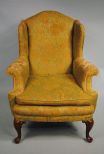 Vintage Queen Anne Style Wing Chair, Upholstered in green fabric in fair condition. 41"h, 32"w Vintage Queen Anne Style Wing Chair, Upholstered in green fabric in fair condition. 41"h, 32"w