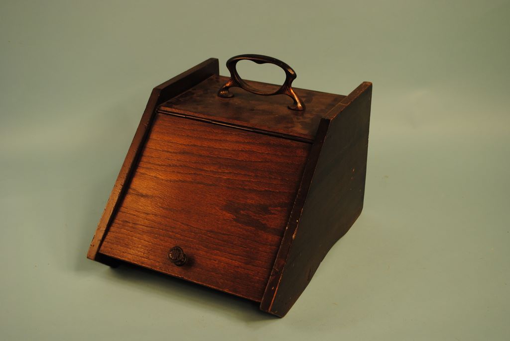 English Oak Coal Box, Early 20th Century. 12 1/2" w 15 1/2"d 12"h English Oak Coal Box, Early 20th Century. 12 1/2" w 15 1/2"d 12"h