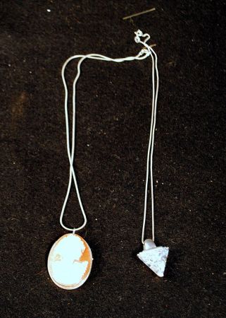 Cameo Pendant/Necklace on Sterling Base-Base marked Italy 925 along with a Large Shape Triangular Cubic on Sterling Chair. Cameo Pendant/Necklace on Sterling Base-Base marked Italy 925 along with a Large Shape Triangular Cubic on Sterling Chair.