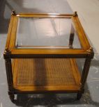 Glass top end table with cane in bottom shelf. 22"h, 25 2/8 Sq. Glass top end table with cane in bottom shelf. 22"h, 25 2/8 Sq.