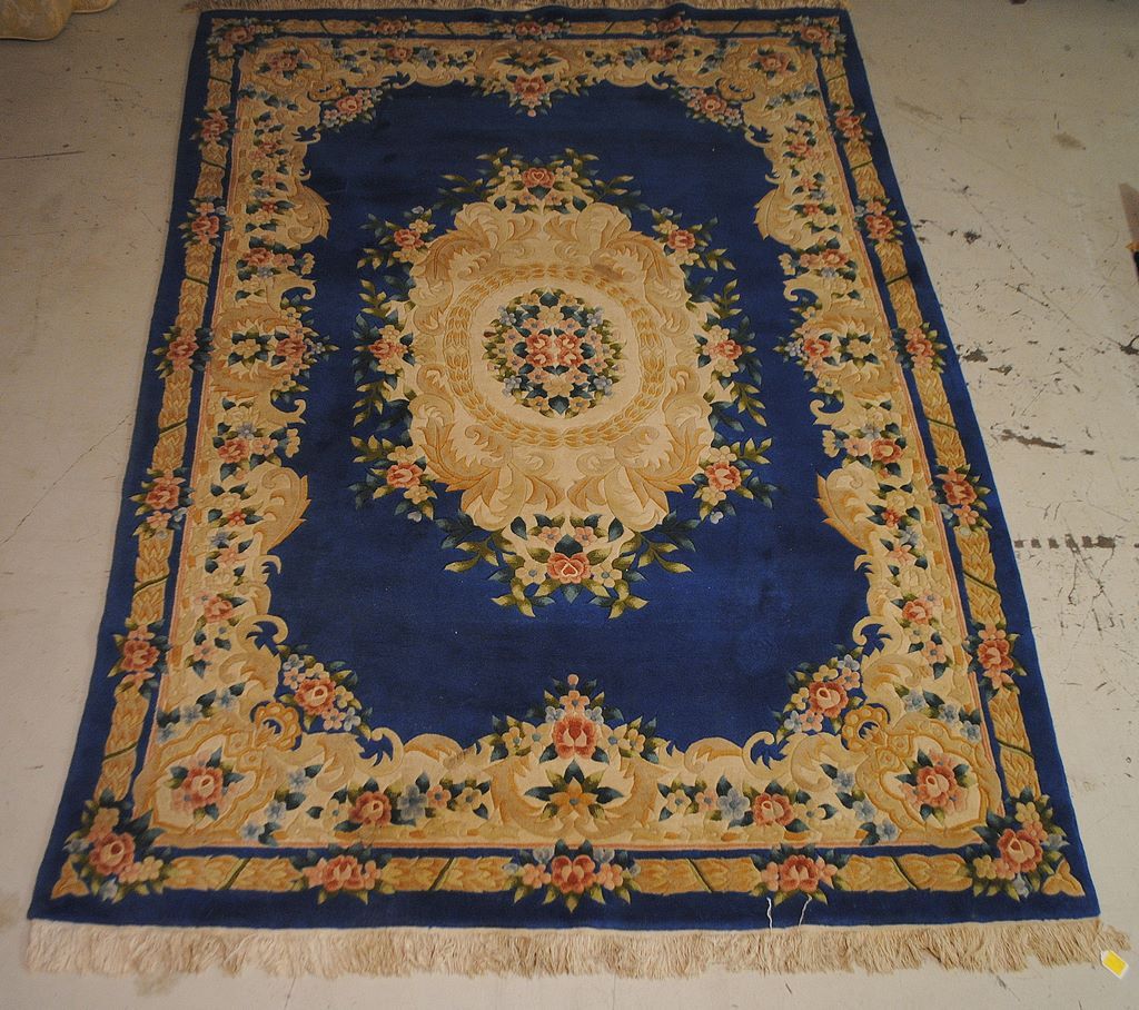 Oriental Rug, vivid colors of blue background, pinks, and greens Oriental Rug, vivid colors of blue background, pinks, and greens