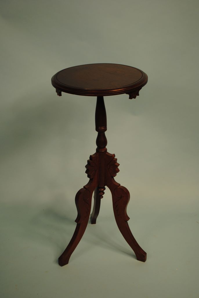 Victorian stand has insized carving. 30"h, 14"round. Victorian stand has insized carving. 30"h, 14"round.