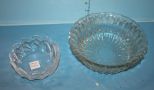 Two glass vases, blue vase 5 3/4"h. & blue frosted vase 7"h. Two glass vases, blue vase 5 3/4"h. & blue frosted vase 7"h.