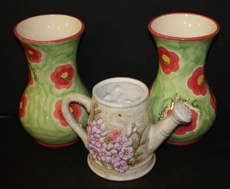 164 Two Ceramic Vases and Pitcher with Hummingbird