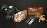 Small Ceramic Planter, Painted Ducks, Carved Pig, and Two Pocket Knives Small Ceramic Planter, Painted Ducks, Carved Pig, and Two Pocket Knives