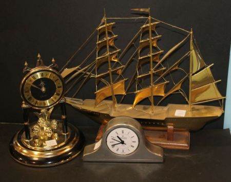 176 Elgin Clock, International Silver Company Clock and Brass Ship on Stand Clock 11"h., clock 4"h., stand 19"h.