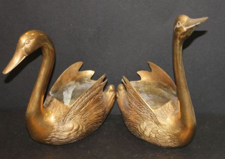 Pair of Brass Swan Pitchers 12"h. Pair of Brass Swan Pitchers 12"h.