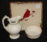 194 Redbird Plate, Lennox, Bowl, and Ceramic Pitcher Lennox 4"dia.