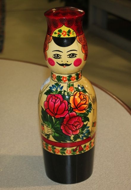 Colorful Wood Hand Painted Wine Bottle Cover 13"h. Colorful Wood Hand Painted Wine Bottle Cover 13"h.