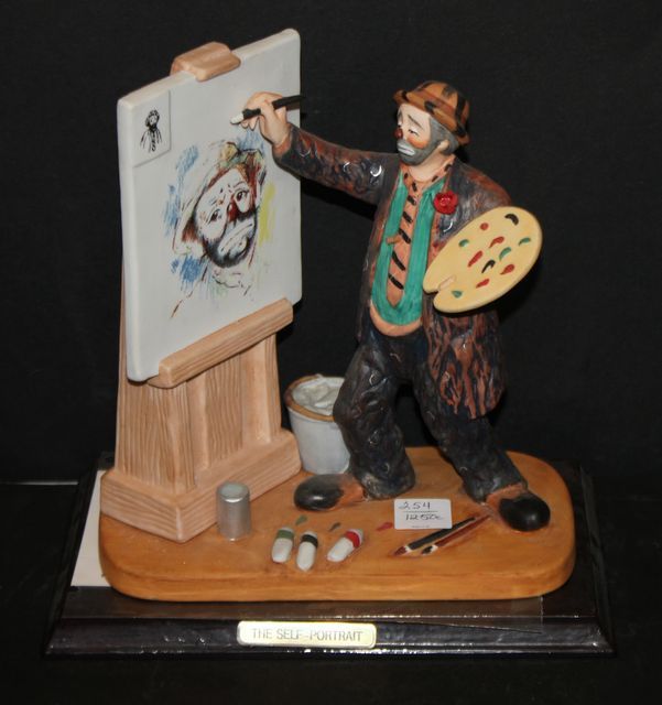 "The Self Portrait" Porcelain Figurine, Emmett Kelly Jr. COA, with stand, 8"w., 9"h. "The Self Portrait" Porcelain Figurine, Emmett Kelly Jr. COA, with stand, 8"w., 9"h.