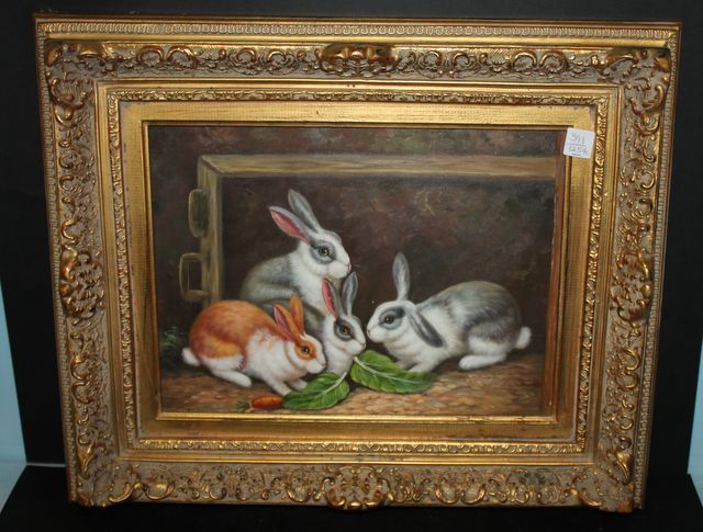 391 Contemporary Painting of Rabbits 23"w., 20"h.