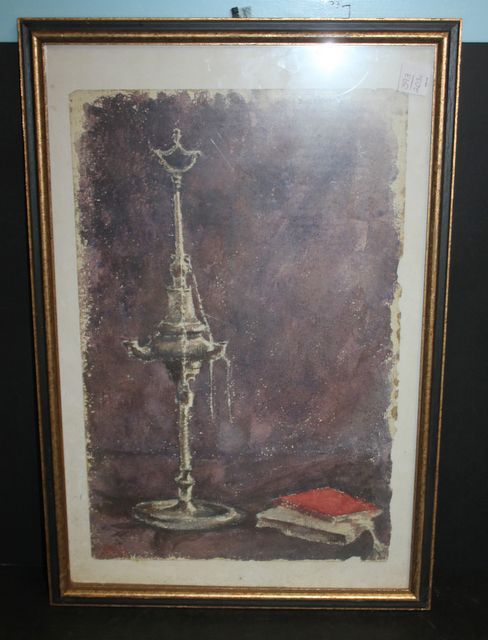 Watercolor of Old Oil Lamp and Books 15"w., 37"h. Watercolor of Old Oil Lamp and Books 15"w., 37"h.