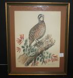 395 Print or Watercolor of Quail Signed by Texas Artist Wallace Hughes 15"w., 18"h.