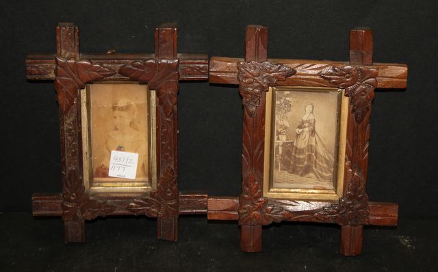 Two Small Tramp Art Victorian Frames with Photos 6"w., 8"h. Two Small Tramp Art Victorian Frames with Photos 6"w., 8"h.