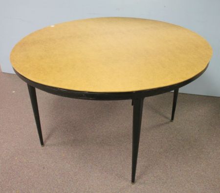 Round Metal Base Table with Particle Board Top 48"dia., 28"h. Round Metal Base Table with Particle Board Top 48"dia., 28"h.