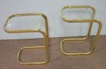 Pair of Metal and Glass Top End Tables 10"w., 14"d., 20"h. Pair of Metal and Glass Top End Tables 10"w., 14"d., 20"h.
