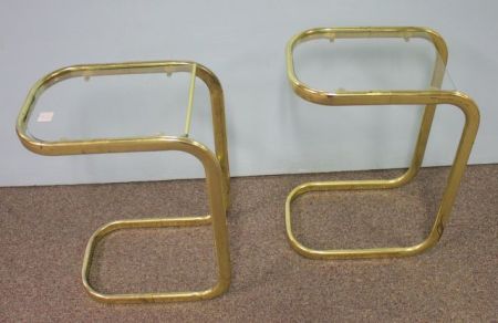 500 Pair of Metal and Glass Top End Tables 10"w., 14"d., 20"h.