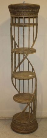 Unusual Spiral Decorative Faux Painted Metal Stand Five tier painted plant or what not stand; 13" dia., 70" h. Unusual Spiral Decorative Faux Painted Metal Stand Five tier painted plant or what not stand; 13" dia., 70" h.