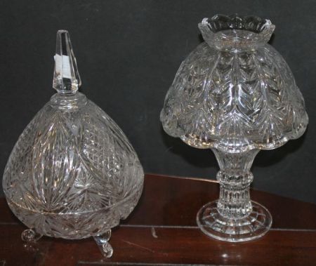 614 Lead Crystal Fairy Lamp and Covered Compote Lamp has chip on rim and compote has one broken foot
