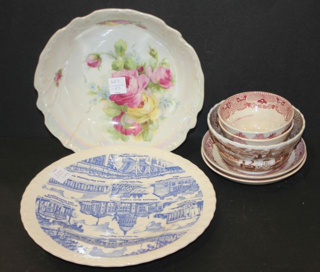 667 Hand Painted Bowl, Stoneware Small Bowls/Saucers, Souvenir Plate Hand painted bowl has a crack