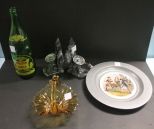 Art Glass Dish, Plate, Golden Eagle Bottle, and Onyx Bookends dish 6" h., plate 10 1/2" dia. Art Glass Dish, Plate, Golden Eagle Bottle, and Onyx Bookends dish 6" h., plate 10 1/2" dia.