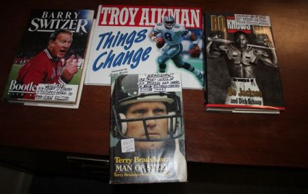 Four Football Books Troy Aikman Things Change, Terry Bradshaw Man of Steel, First Edition Bo Knows Bo, First Edition Barry Switzer Bootlegger's Boy Four Football Books Troy Aikman Things Change, Terry Bradshaw Man of Steel, First Edition Bo Knows Bo, First Edition Barry Switzer Bootlegger's Boy