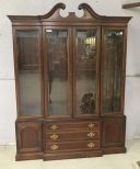 Hickory "American Masterpiece Collection" China Cabinet, solid cherry, two piece, four beveled glass doors with glass display shelves, is lighted but needs new wiring, three storage drawers, 86"h., 66"w., 16"d. Hickory "American Masterpiece Collection" China Cabinet, solid cherry, two piece, four beveled glass doors with glass display shelves, is lighted but needs new wiring, three storage drawers, 86"h., 66"w., 16"d.