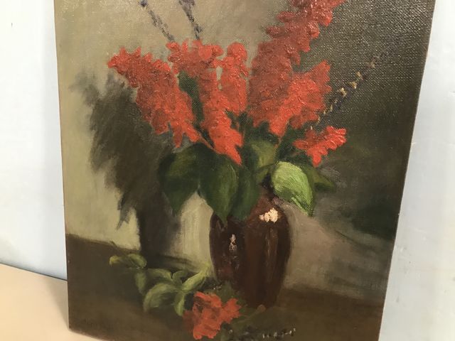 Marie Hull Oil Painting Still Life On Canvas, unframed, Signed Marie Hull (lower left corner), Still Life on Flower Vase with background shadow, recently has been professionally cleaned, 20"h., 16"w. Marie Hull Oil Painting Still Life On Canvas, unframed, Signed Marie Hull (lower left corner), Still Life on Flower Vase with background shadow, recently has been professionally cleaned, 20"h., 16"w.