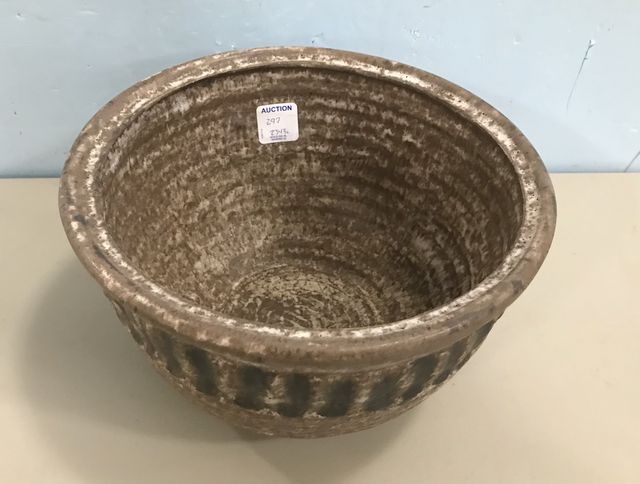 Peters Pottery Nutmeg Serving Bowl, signed, 5"h., 9"dia. Peters Pottery Nutmeg Serving Bowl, signed, 5"h., 9"dia.