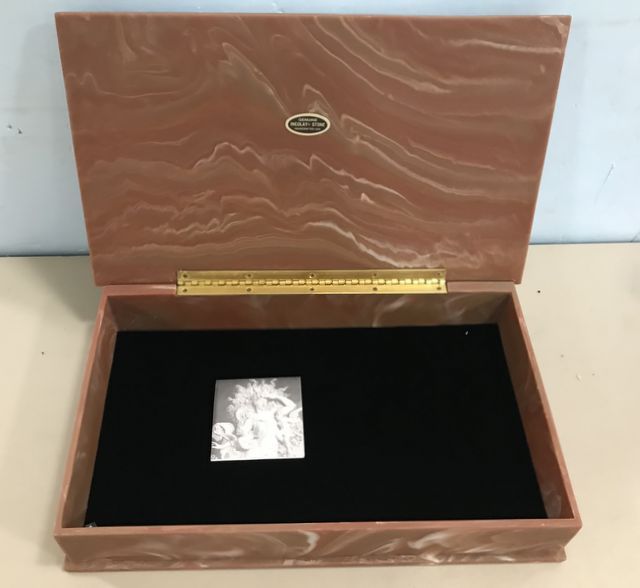 Genuine Incolay Stone Large Trinket/Jewelry Box, made in USA, lift top, felt lining, good condition, 3"h., 16"w., 10"d. Genuine Incolay Stone Large Trinket/Jewelry Box, made in USA, lift top, felt lining, good condition, 3"h., 16"w., 10"d.