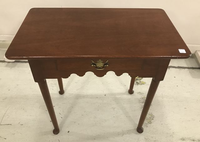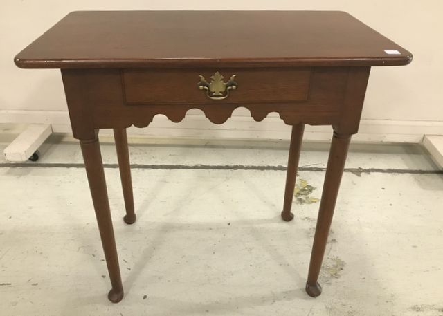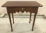 Dixon Hand Crafted Colonial Style Side Table, single drawer, sturdy, has some scratches, 27"h., 29"w., 17"d. Dixon Hand Crafted Colonial Style Side Table, single drawer, sturdy, has some scratches, 27"h., 29"w., 17"d.
