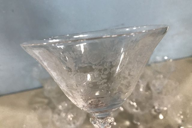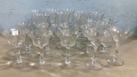 20 Rose Point Style Glass Stemware, assorted glass styles, goblets, sherbets. 20 Rose Point Style Glass Stemware, assorted glass styles, goblets, sherbets.