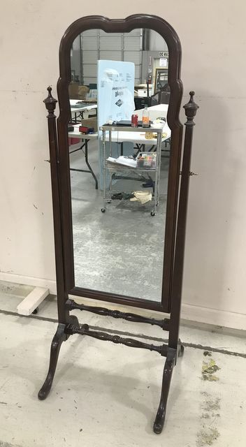Antique Reproduction Cheval Mirror, cherry finish, with stand, 66"h. 24"w. Antique Reproduction Cheval Mirror, cherry finish, with stand, 66"h. 24"w.