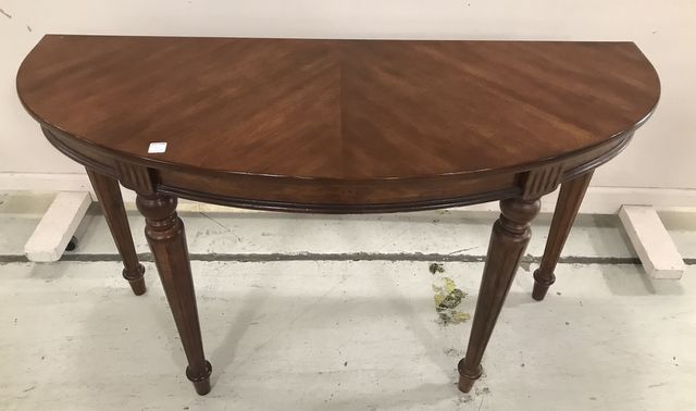 French Style Modern Demi Lune Wall Console, minor scuffs on finish, sturdy, 30"h., 48"w., 18"d. French Style Modern Demi Lune Wall Console, minor scuffs on finish, sturdy, 30"h., 48"w., 18"d.