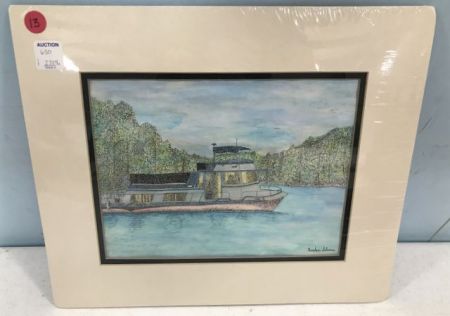 Pen and Watercolor of Boat by Kristen Selman, Jackson Prep, matted, unframed, 12 1/2"h., 14"w. Pen and Watercolor of Boat by Kristen Selman, Jackson Prep, matted, unframed, 12 1/2"h., 14"w.
